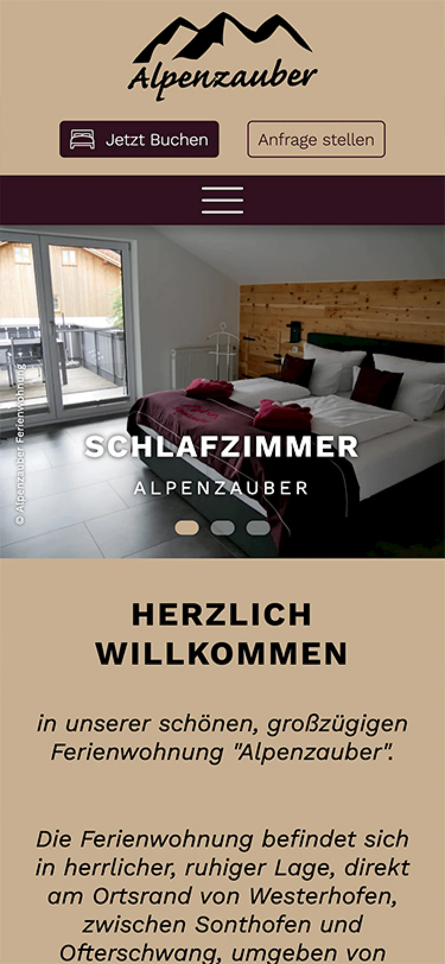 Die Website der Alpenzauber Ferienwohnung integriert die Feratel TOSC5 Buchungsstrecke, verfügt über ein Kontaktformular und eine Anfahrtsbeschreibung via OpenStreetMap.