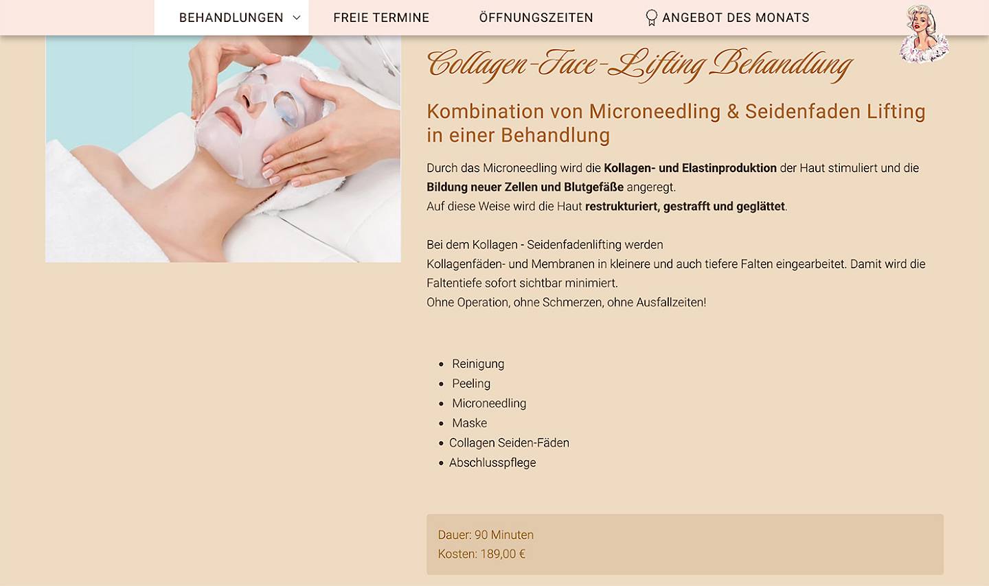 Das Kosmetikstudio von Helena Pfeiff in Sonthofen bietet ein breites Spektrum an Behandlungen und Dienstleistungen. Neben detaillierten Informationen zu allen Behandlungen werden über die Website werden freie Termine kommuniziert, welche auch direkt angefragt werden können.