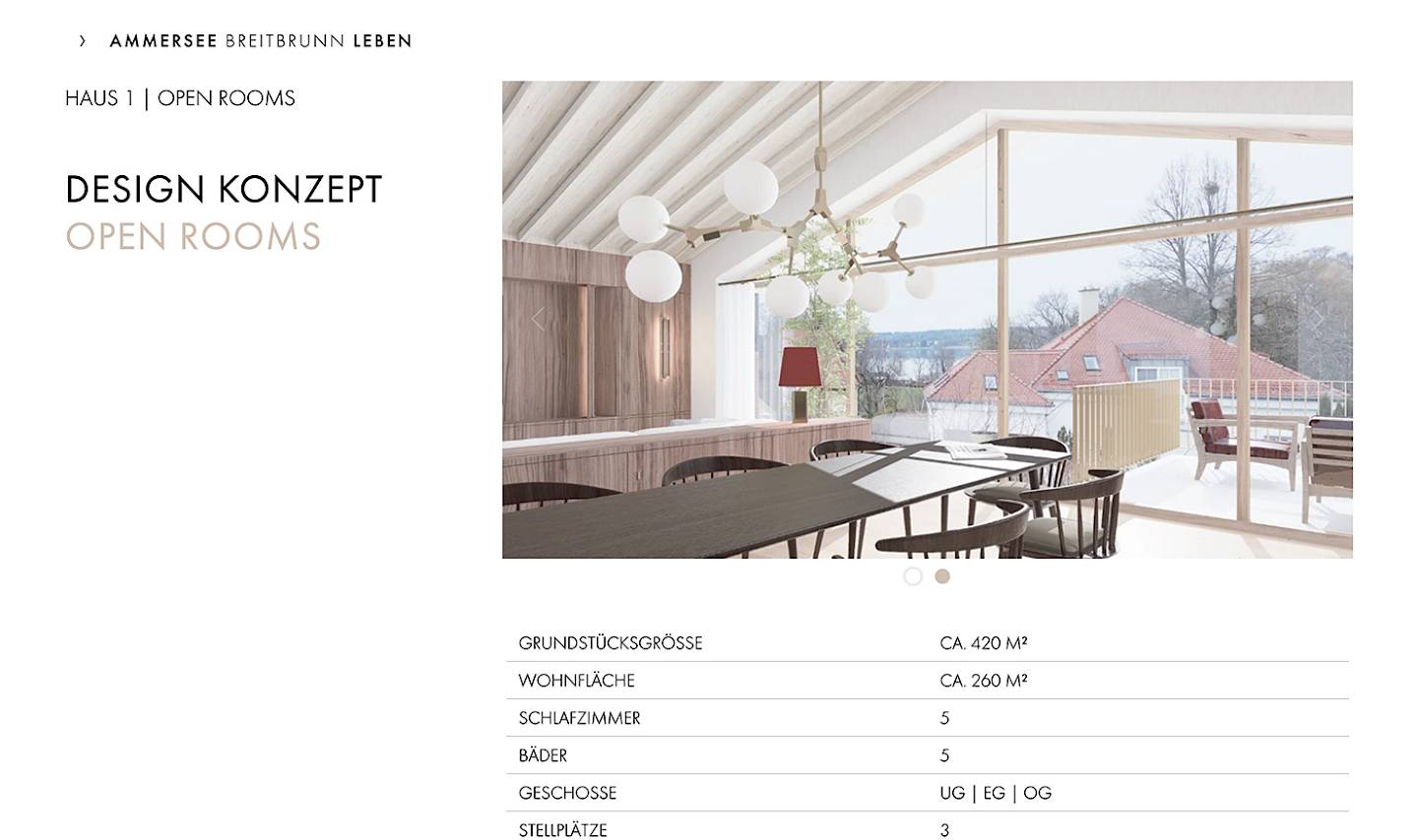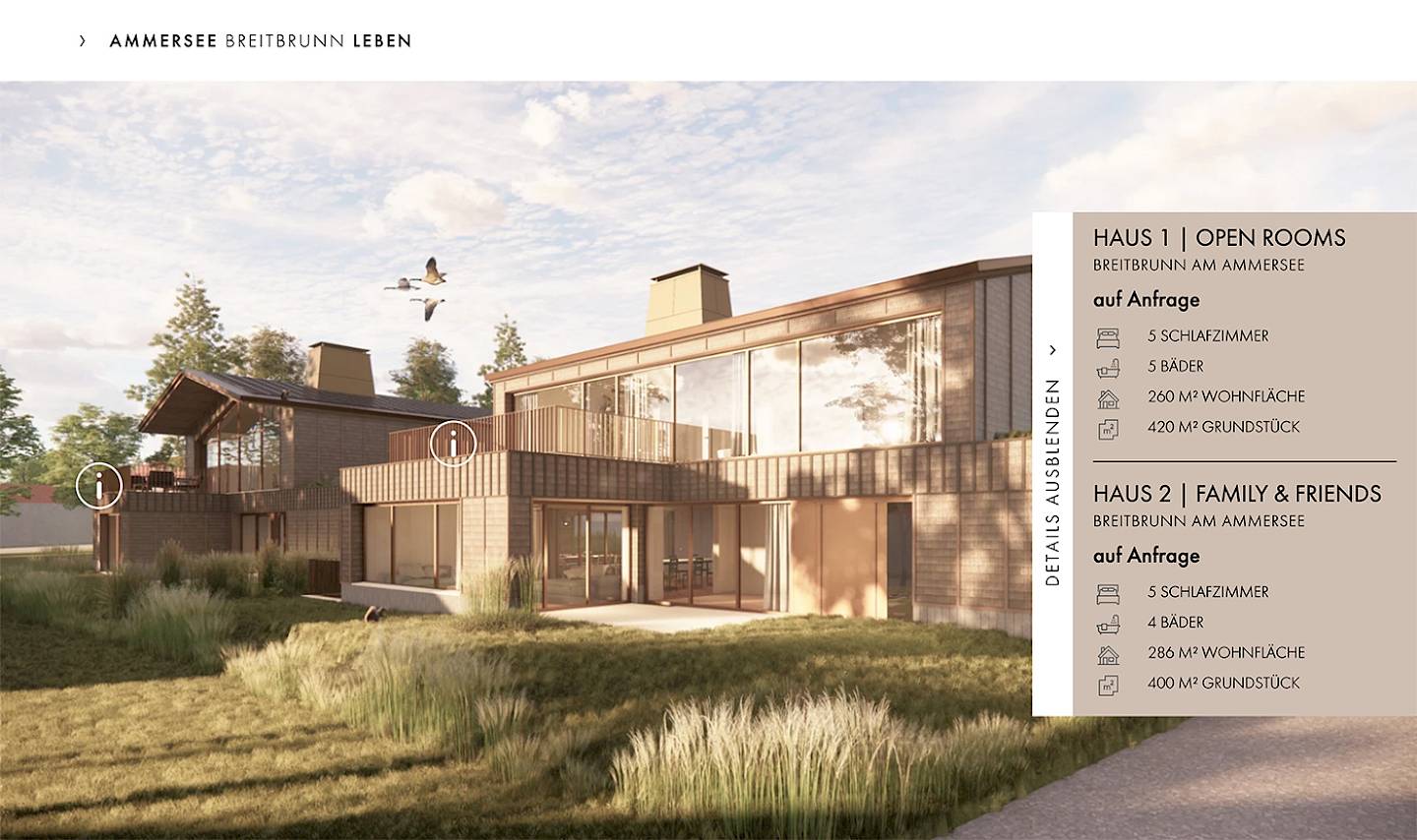 Die beiden Häuser und die Umgebung werden auf dieser Single-Page vollumfänglich und ansprechend vorgestellt.