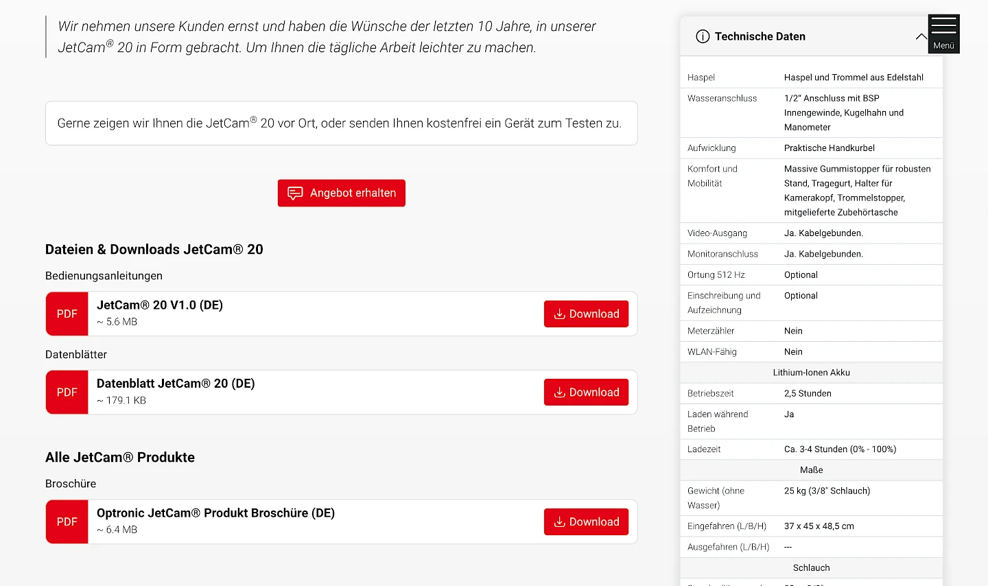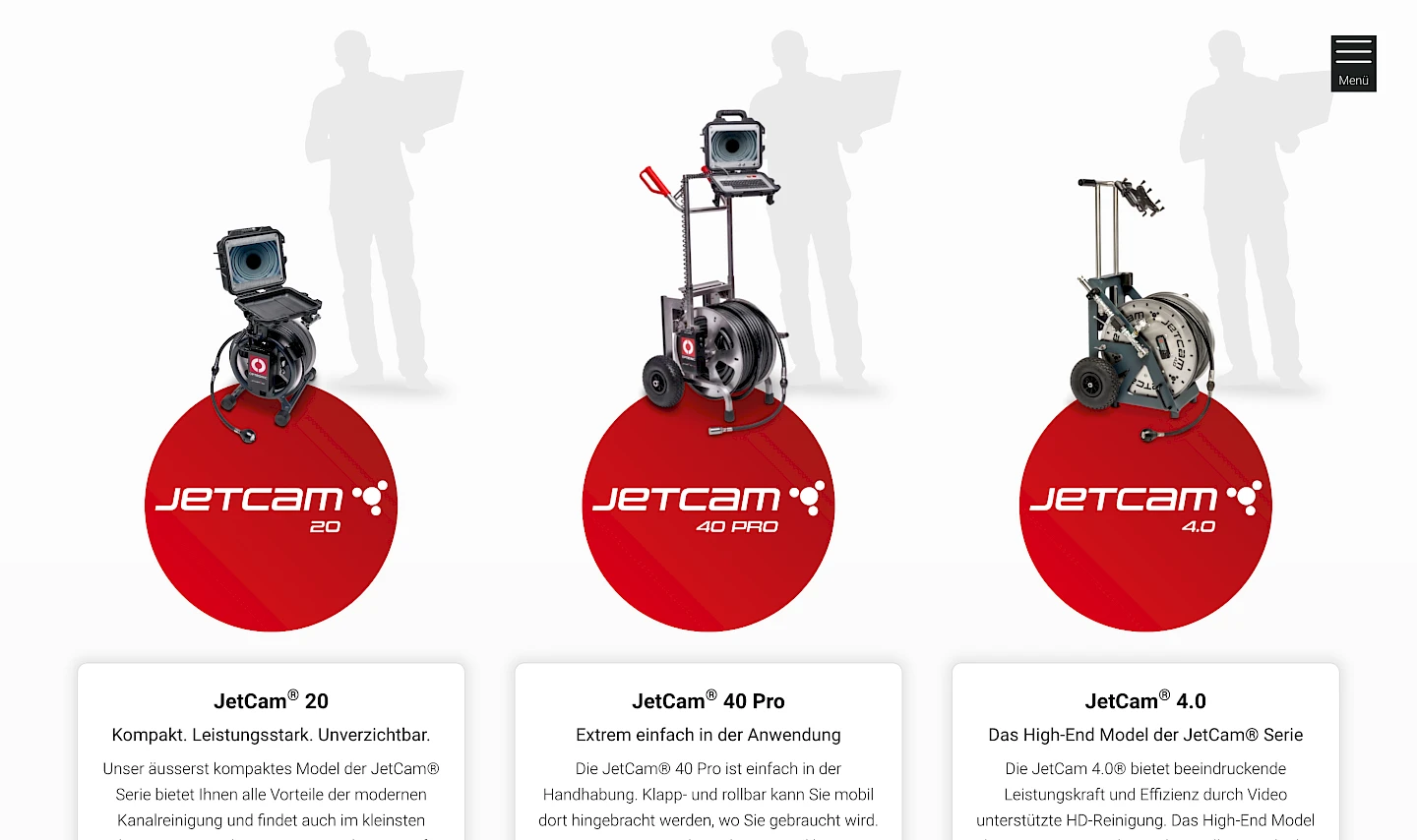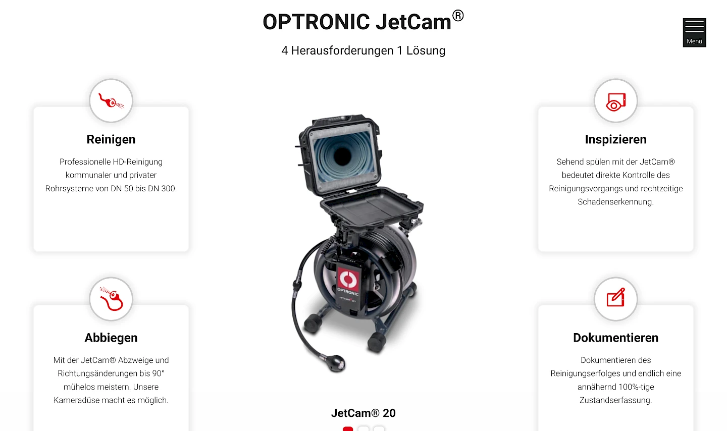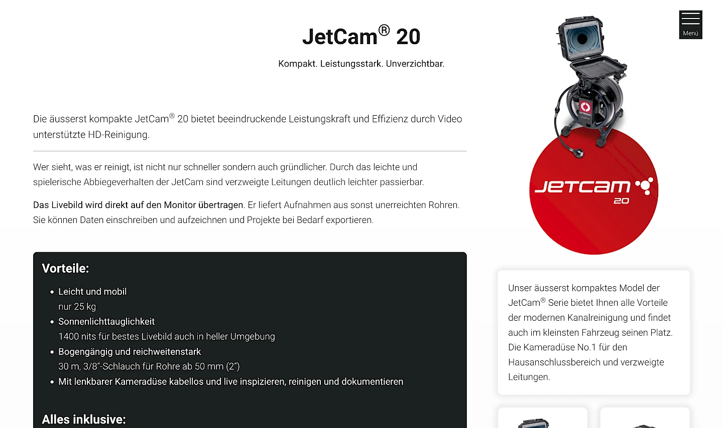 Nach dem Design-Update stehen nun die JetCam® Produkte deutlich im Vordergrund. Das Layout der Seite wurde um neue Gestaltungselemente erweitert.