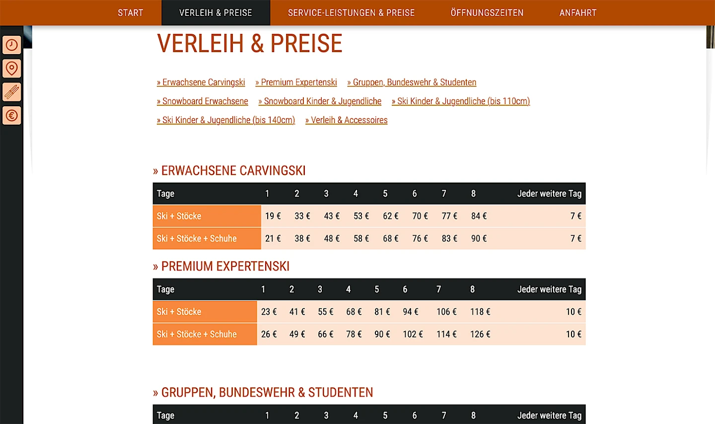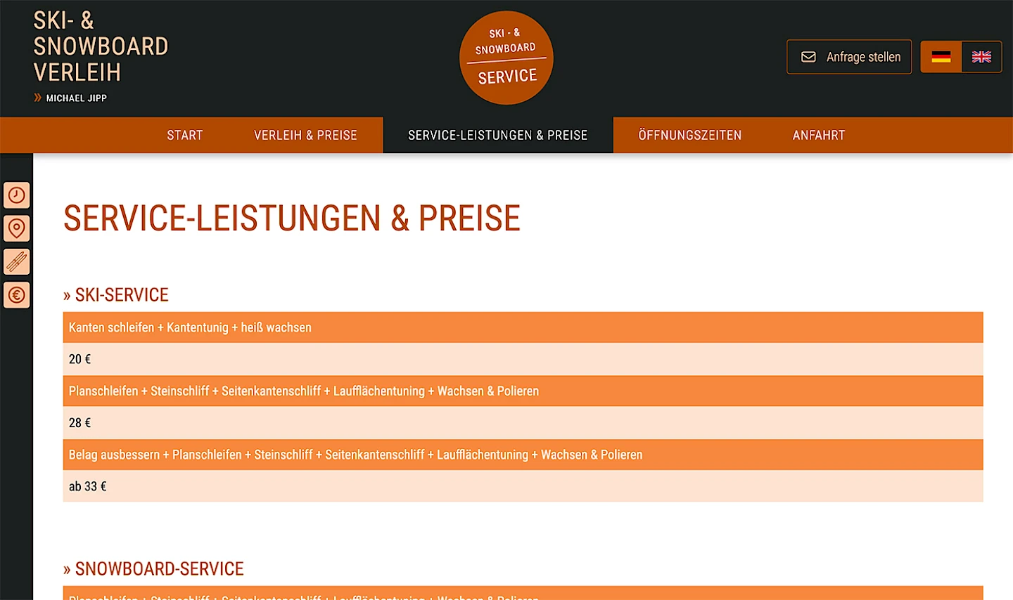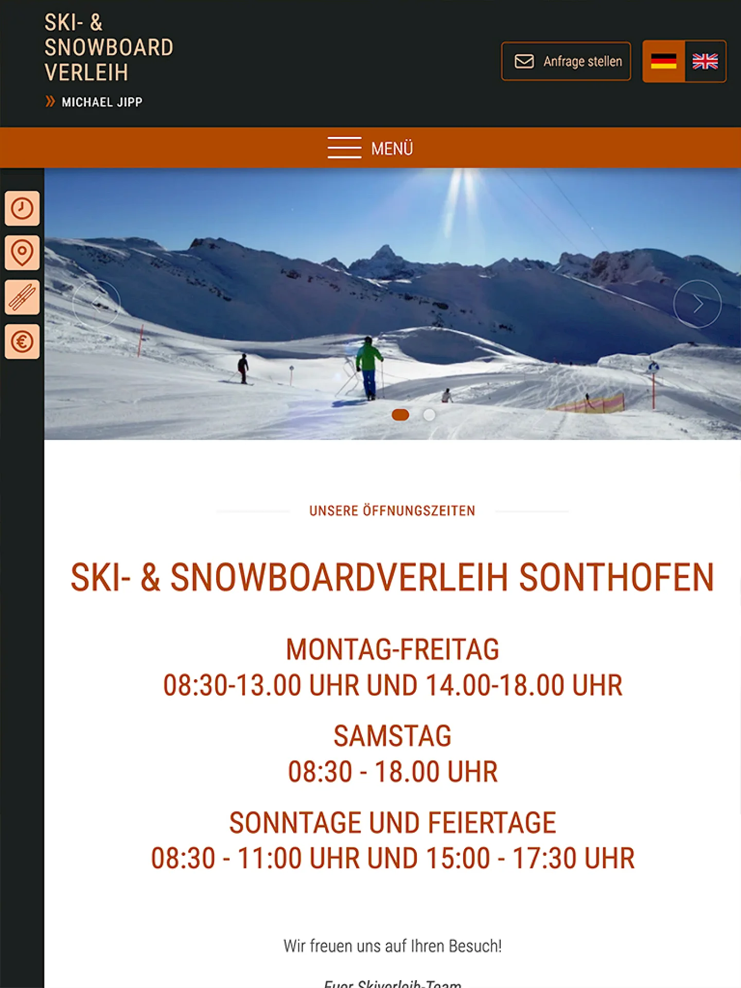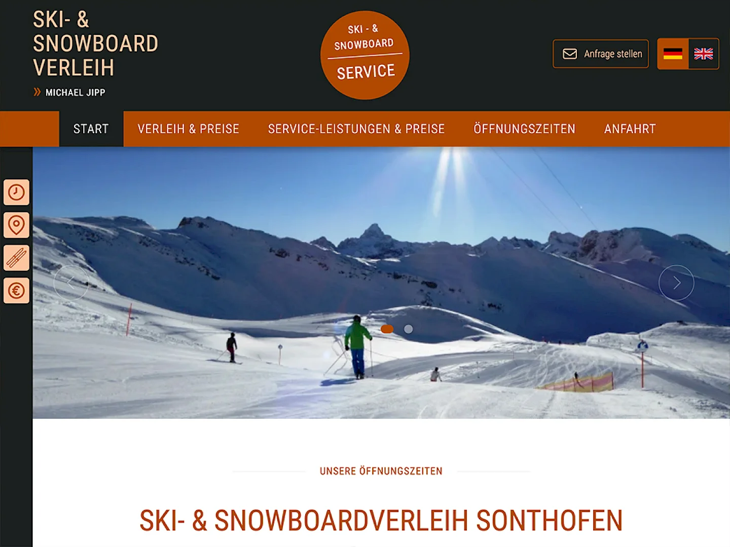 Mit dem Skiverleih Sonthofen verbindet uns seit Jahren eine freundschaftliche Beziehung. Nun durfte GOLDGRID Design auch die mehrsprachige Website mit der Angebots- und Serviceübersicht gestalten und umsetzen. Neben dem informativen Charakter der Seite kann das Equipment hier auch gleich individuell reserviert werden. Das Layout der Website ist angelehnt an die aktuellen Werbematieralien des Skiverleih Sonthofen.